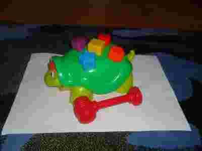 Następnie wystarczy wsunąć główkę zwierzaka z powrotem a kształty wyskoczą i zabawę można rozpocząć od nowa. Aby młoteczek nie zgubił się, gdy zabawka jest nie używana, można go wcisnąć między ogon i skorupę naszego przyjaciela.