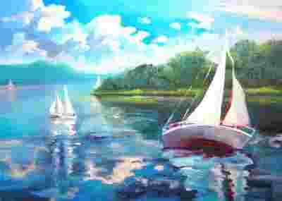 Żaglówki, obraz ręcznie malowany 60x80 cm.