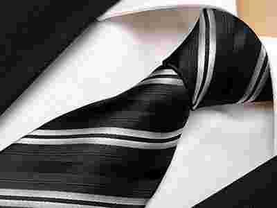 Żakardowy Krawat Męski w Paski CZARNY SZARY G33