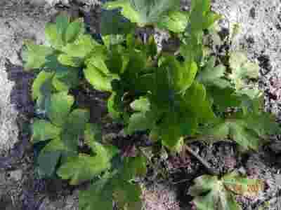 Liście są są błyszczące, długoogonkowe, nagie okrągłe, dłoniasto złożone z pięciu zazębiających się 3-wrębnych odcinków o klinowatej nasadzie.