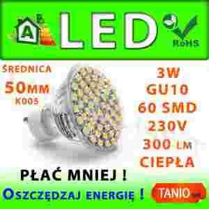 ŻARÓWKA 60 LED SMD GU10 HALOGEN CIEPŁA 300lm 3W K5