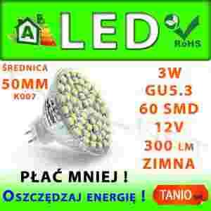 ŻARÓWKA 60 LED SMD GU5.3 HALOGEN ZIMNA 300lm 3W K7