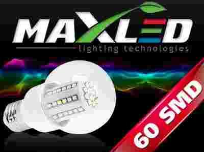 Energooszczędna żarówka MAX-LED E27 60 SMD LED jest nowoczesną żarówką wykorzystującą jako źródło światła półprzewodnikowe diody LED które rozpraszają światło, imitując świecenie klasycznej żarówki, dzięki temu idealnie oświetla pomieszczenie. Gwint E27 pozwala na zastosowanie żarówki w tradycyjnych oprawach oświetleniowych.