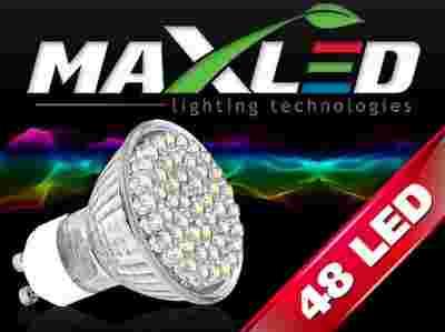Energooszczędna żarówka MAX-LED GU10 48 LED 230V jest nowoczesną żarówką wykorzystującą jako źródło światła półprzewodnikowe diody LED które rozpraszają światło, imitując świecenie klasycznej żarówki, dzięki temu idealnie oświetla pomieszczenie. Gwint GU10 pozwala na zastosowanie żarówki w tradycyjnych oprawach oświetleniowych.