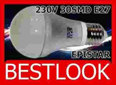 Energooszczędna żarówka E27 30SMD jest to nowoczesna żarówka ledowa która wykorzystuje półprzewodnikowe diody LED jako źródło światła rozpraszając światło imitujące świecenie tradycyjnej żarówki, dzięki czemu idealnie nadaje się do oświetlania pomieszczeń. Gwint E27 pozwala na zastosowanie żarówki w tradycyjnych oprawach oświetleniowych.
