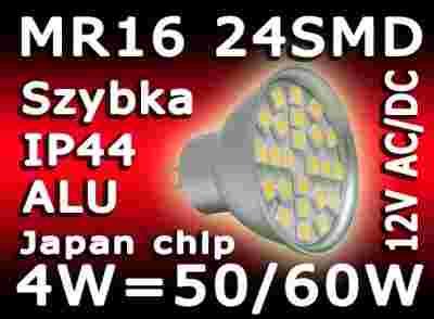 ŻARÓWKA MR16 12V 24 SMD POWER 3 CHIP JAPAN SYSTEM.