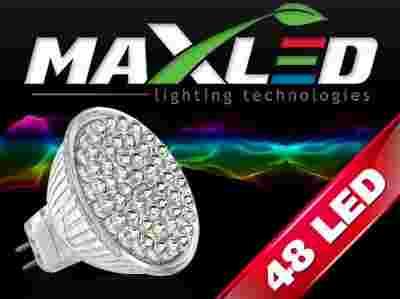Energooszczędna żarówka MAX-LED MR16 48 LED 230V jest nowoczesną żarówką wykorzystującą jako źródło światła półprzewodnikowe diody LED które rozpraszają światło, imitując świecenie klasycznej żarówki, dzięki temu idealnie oświetla pomieszczenie. Gwint MR16 pozwala na zastosowanie żarówki w tradycyjnych oprawach oświetleniowych.
