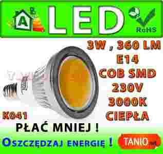 ŻARÓWKA E14 COB LED HALOGEN CIEPŁA 360lm 3W K041