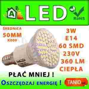 ŻARÓWKA E14 LED 60 SMD HALOGEN CIEPŁA 360lm 3W K09