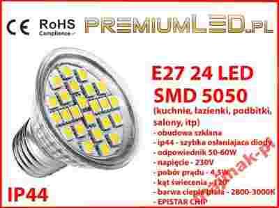 Żarówka E27 24 LED SMD IP44 21 60 80 27 4,5W = 50W