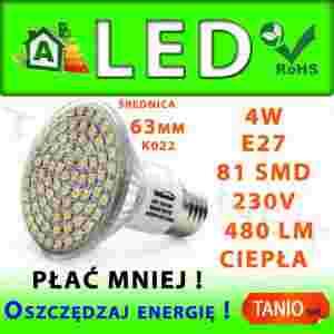 ŻARÓWKA E27 LED 81 SMD HALOGEN CIEPŁA 480lm 4W K22