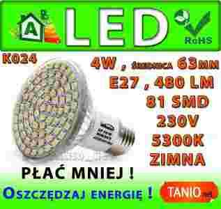 ŻARÓWKA E27 LED 81 SMD HALOGEN ZIMNA 480lm 4W K24