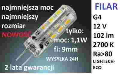 ŻARÓWKA G4 24 LED SMD 12V DC CIEPŁA NAJMNIEJSZA