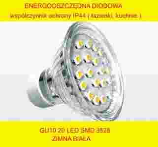 Żarówka gu10 20 led smd zimna IP44 21 60 80 24 48