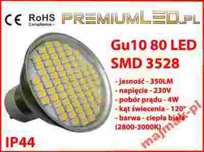 Żarówka GU10 80 LED SMD 3528 4W = 45W 21 24 27 60