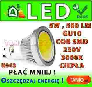 ŻARÓWKA GU10 COB LED HALOGEN CIEPŁA 500lm 5W K042