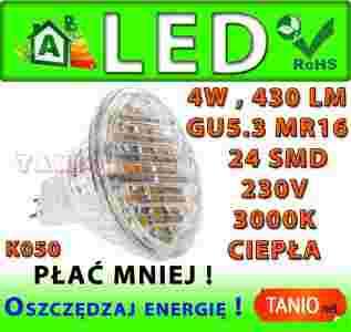 ŻARÓWKA GU5.3 LED 24 SMD HALOGEN WARM 430lm 4W K50