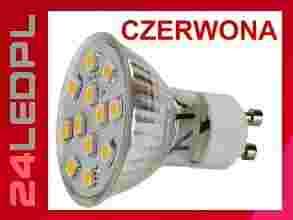 Żarówka LED 12 SMD GU10 Czerwona