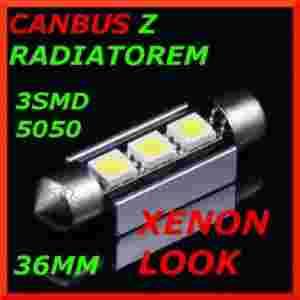 Żarówka postojowa led z systemem Canbus z trzema ledami SMD 36 mm z radiatorem jest