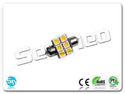 Zamiennik LED żarówki samochodowej rurkowej 31 mm C5W/C10W. Posiada 6 diod LED SMD 5050. Napięcie pracy: 12 V.