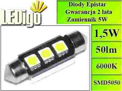 Żarówka rurka LED C5W 39mm 3SMD5050 Can Bus SUPER