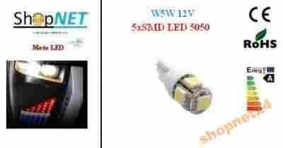 Żarówka W5W 12V 5 X SMD 5050 Zimna biel