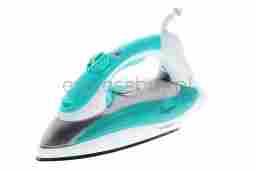 Nowe oryginalne ŻELAZKO FIRST AUSTRIA ZE STOPĄ CERAMICZNĄ 2500W i strażnikiem - uchwyt żelazka zielonkawo-biały.