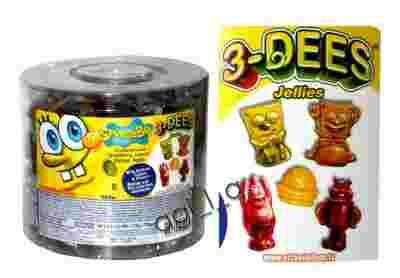 SPONGEBOB to pyszne, trójwymiarowe żelki owocowe w kształcie bohaterów tej kreskówki. Wyprodukowane z koncentratów soków owocowych, nie zawierają sztucznych barwników i aromatów. W opakowaniu smaki truskawka, cytryna, pomarańcz i jabłko. Każda żelka zapakowana w osobne, pojedyncze opakowanie.