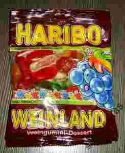 Witam! Na tej aukcji proponuję państwu NIEMIECKIE żelki HARIBO - WEINLAND. Są to pyszne żelki o smaku winogronowym .