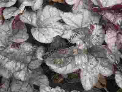 x Heucherella - Żuraweczka 'Gunsmoke' Jest to wieloletnia roślina pochodzenia mieszańcowego. Krzyżowanie w obrębie rodzajów heuchera i tiarella doprowadziło do wytworzenia wielu odmian ozdobnych przede wszystkim dzięki barwie liści. Roślina ta przybiera formę gęstej kępy. Ze zgrubiałej łodygi wyrastają liście o długich ogonkach. Kształt ich jest najczęściej zbliżony do sercowatego. Barwa i wielkość liści jest podstawową cechą różniącą odmiany. Jedną z najnowszych odmian jest 'Gunsmoke'. Barwa liści karminowa z wyraźnym srebrnym wzorkiem. Odmiana wyróżnia się kształtem liści, które są głęboko wcinane. Wysokość rośliny przeciętna (ok. 25 cm). Wytwarza niewielkie i gęste kępy. Wymaga gleby zasobnej, przepuszczalnej i przeciętnie wilgotnej. Uprawa w glebie zbyt wilgotnej kończy się niepowodzeniem, bo roślina w takich warunkach przedwcześnie zamiera. Gleby zbyt zwięzłe trzeba koniecznie rozluźnić przez dodatek torfu. Powinna rosnąć w półcieniu lub słońcu. Ma wszechstronne zastosowanie w ogrodzie. Najczęściej sadzona jest na rabatach, skalnikach, ale i w pojemnikach. Należy wybierać miejsca dobrze wyeksponowane. W czasie mroźnych i bezśnieżnych zim dobrze jest chronić liście zwłaszcza przed wysuszającym słońcem. Najlepiej w tym celu użyć gałęzi iglastych.