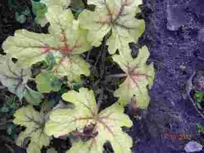 Liście zebrane w różyczkę liściową wyrastającą z kłącza. liście są sercowate, długoogonkowe, dłoniasto-klapowane (mają 5-7 klap). Ubarwienieliścizależyododmiany