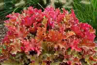 Opis: Żurawki są chętnie sadzone w ogrodach, ze względu na piękne barwne liście, które utrzymują się przez cały sezon wegetacyjny. Piękna i mocna odmiana „Marmalade” atrakcyjna przez cały sezon, posiada niepowtarzalne, silnie pofalowane, błyszczące liście i jest bardzo zmienna kolorystycznie. Bylina o zwartym pokroju dorasta do 40 cm wysokości, tworząc kępy o średnicy 45 cm. Od czerwca do sierpnia pojawiają się czerwone kwiaty, zebrane w luźne wiechy wys. 60cm.