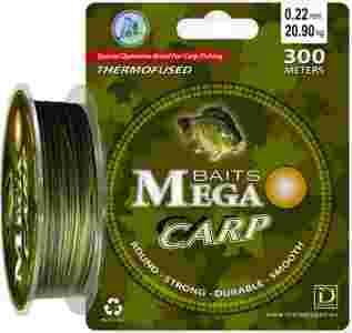 Nie oznacza to, że wszystkie plecionki na rynku są takie same. Sekret jakości leży jak zwykle w szczegółach technologicznych, takich jak: średnica i długość pojedynczego włókna, rodzaj i gęstość zastosowanego splotu, trwałość powłoki zabezpieczającej, gładkość powierzchni oraz odporność na ścieranie i uszkodzenia mechaniczne. Mega Baits Carp to plecionka nowej generacji, spełniająca surowe normy jakości, poddana przed wprowadzeniem na rynek długotrwałym testom na wielu łowiskach karpiowych. Większość plecionek dostępnych na rynku to plecionki zbudowane z myślą o spinningistach i nie wszystkie ich parametry odpowiadają potrzebom łowców karpi. Plecionka Mega Baits Carp posiada wszelkie cechy dobrej plecionki karpiowej. Dzięki prawie zerowej rozciągliwości natychmiast przekazuje sygnał brania i umożliwia skuteczne zacięcie z bardzo dużej odległości. Ma podwyższoną wytrzymałość na węzłach, idealnie okrągły przekrój umożliwiający bardzo dalekie rzuty, odporność na uszkodzenia mechaniczne i promieniowanie UV oraz zanieczyszczenia chemiczne wody. Specjalna powłoka zewnętrzna nadaje plecionce gładkość i elastyczność, a podwyższona w stosunku do standardowych linek sztywność powoduje, że jest ona wyraźnie mniej podatna na splątanie od innych plecionek. Znakomicie dobrany i wyjątkowo trwały kolor camou pozwala na skuteczne maskowanie na tle dna w większości zbiorników wodnych. Dzięki tym cechom Mega Baits Carp spełni wszelkie oczekiwania nawet najbardziej wymagających wędkarzy karpiowych, dając im komfort i pewność w czasie zacięcia i holu każdej, nawet rekordowej ryby. Plecionka pakowana jest w odcinkach trzystumetrowych.