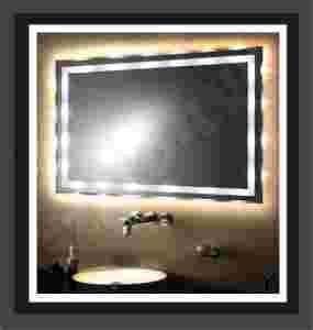 PODŚWIETLENIE HALOGENOWE TO 10 OGÓLNIE DOSTĘPNYCH ŻARÓWEK SZTYFTOWYCH (10 W) ZASILANYCH PRZEZ TRANSFORMATOR ELEKTRONICZNY UMIESZCZONY POD LUSTREM O MOCY 105 W, MARKOWE ŻARÓWKI O DŁUGIEJ ŻYWOTNOŚCI ZAPEWNIAJĄ ŁADNE BIAŁE ŚWIATŁO, ( W NASZYCH LUSTRACH NIE STOSUJEMY WYSOKO NAPIĘCIOWYCH ŻARÓWEK HALOGENOWYCH 230 V, PONIEWAŻ DAJĄ ONE ZUPEŁNIE INNE, ŻÓŁTE ŚWIATŁO I NAGRZEWAJĄ SIĘ DO BARDZO WYSOKICH TEMPERATUR CO MA BARDZO ZŁY WPŁYW NA LUSTRO ) OŚWIETLENIE TO ZNAJDUJE PRAKTYCZNE ZASTOSOWANIE W ŁAZIENCE BĄDŹ PRZEDPOKOJU JAKO OŚWIETLENIE TWARZY, CAŁOŚĆ DAJE FANTASTYCZNY EFEKT, ŚWIATŁO WYCHODZI POPRZEZ MATOWE PASY NA LUSTRZE ( SZER. 4 CM ) ORAZ POZA ZEWNĘTRZNE KRAWĘDZIE LUSTRA CO TWORZY RODZAJ ŚWIETLNEJ RAMY. DZIĘKI DOŚWIADCZENIU NASZEJ FIRMY ODSTĘP LUSTRA OD ŚCIANY ZOSTAŁ ZREDUKOWANY DO MINIMUM I PO ZAMONTOWANIU LUSTRA NA ŚCIANIE WYNOSI TYLKO 2,5 CM