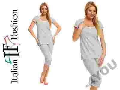 Wyjątkowo udana kombinacja kobiecości, delikatności i przede wszystkim wygody. Bluzeczka z krótkim rękawem. Jednym z największych jej atutów są zawsze modne białe kropki. Zarówno rękawki jak i również półokrągły dekold wykończonony został gumką, co z pewnością pozwoli na lepszy dostęp do piersi podczas karmienia maluszka. Przy dekoldzie umieszczono również ozdobną, satynowa kokardkę, która dodaje uroku. Dół stanowią gładkie, szare spodnie o długości 3/4. Całość wykonana z wysokogatunkowej, 100% bawełny.