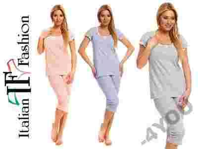 Wyjątkowo udana kombinacja kobiecości, delikatności i przede wszystkim wygody. Bluzeczka z krótkim rękawem. Jednym z największych jej atutów są zawsze modne białe kropki. Zarówno rękawki jak i również półokrągły dekold wykończonony został gumką, co z pewnością pozwoli na lepszy dostęp do piersi podczas karmienia maluszka. Przy dekoldzie umieszczono również ozdobną, satynowa kokardkę, która dodaje uroku. Dół stanowią gładkie, szare spodnie o długości 3/4. Całość wykonana z wysokogatunkowej, 100% bawełny.