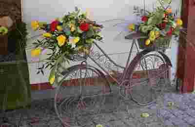084 ROMANT.KWIETNIK RETRO ROWER KWIATY 120CM brąz