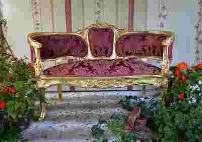 099 Kanapa czerwono złota Ludwik glamour ANTYKI24