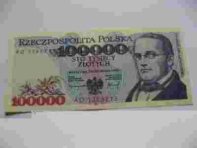 100000 zł 1993 seria AD bardzo ładny