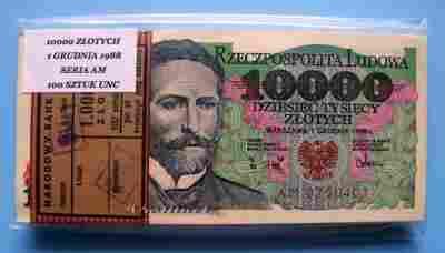 10000 ZŁOTYCH 1988 R PACZKA BANKOWA UNC BCM !!!