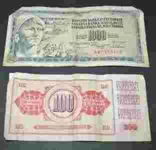 1000 i 100 Dinara - Jugosławia - 2 banknoty