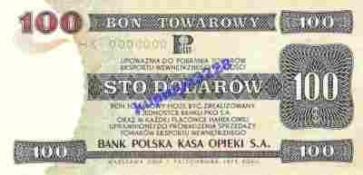 100 $ - Kopia bonu Pewex z 1979 roku