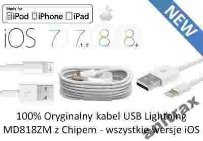 Nowy w 100% Oryginalny kabel USB Lightning Apple MD818ZM