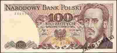 100 zł seria NU z 1986 r stan UNC rzadkość