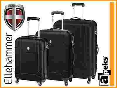 Komplet walizek na czterech kółkach z kolekcji Reykjavik duńskiej marki Ellehammer. Wykonana z poliwęglanu, z tłoczonym logo na odwrocie. Starannie wykończona, z elegancką podszewką, wyposażona w aluminiowy stelaż i zamek szyfrowy typu TSA.