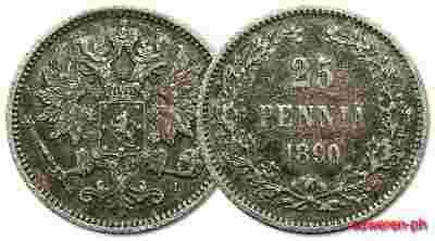 10.FINLANDIA, ALEKSANDER III, 25 PENNIA 1890