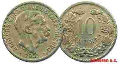 10.LUXEMBURG, ADOLF, 10 CENTIMÓW 1901