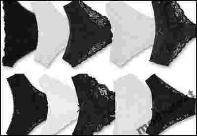 : koronkowe , koronkowo - bawełniane, satynowo- koronkowe , bawełniane , satynowe, piękne, wyjątkowo zgrabnie leżące , seksowne modele , w kolorze czarnym i białym)