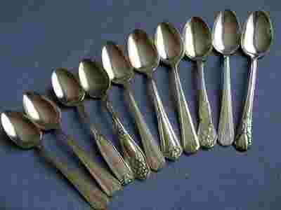 10 posrebrzanych łyżeczek do herbaty.