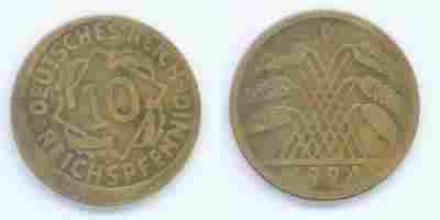 10 Reichspfennig 1924r D - Destrukt